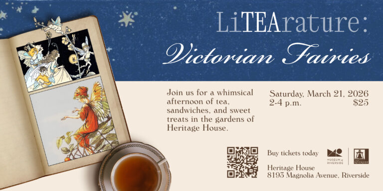 Join us for this whimsical afternoon in the gardens of Heritage House. 8193 Magnolia Avenue, Riverside, CA, 92504